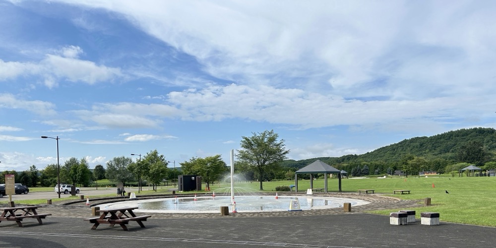 交流館のすぐ横にある水遊び広場です。
