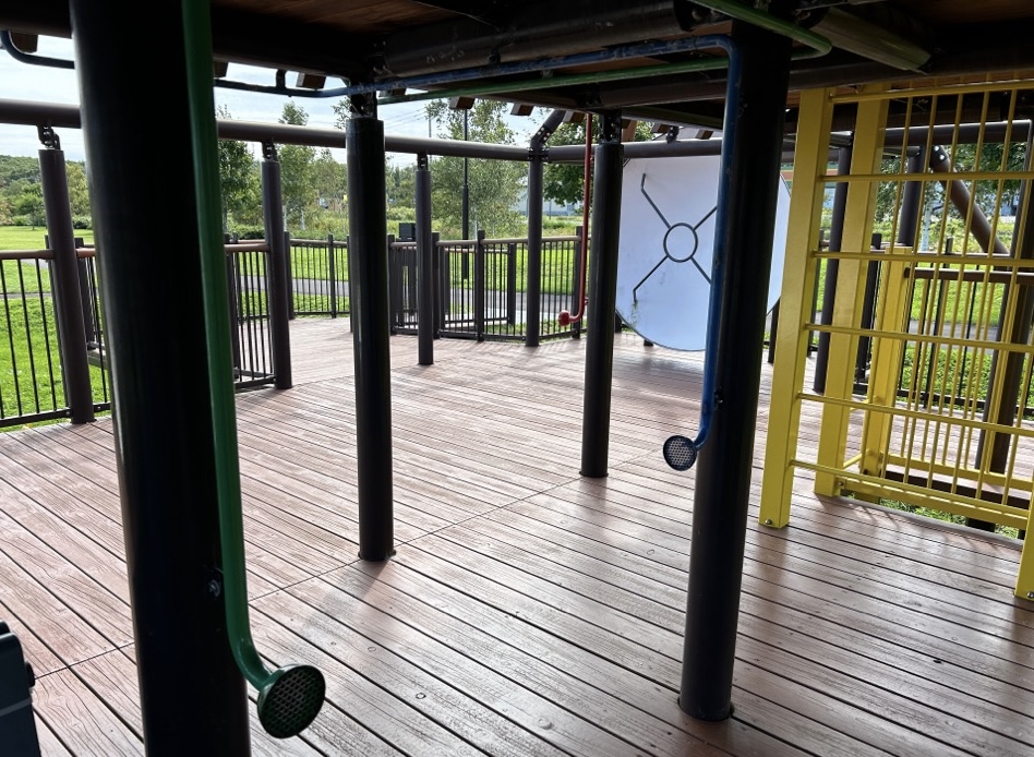 柱にはカラフルなマイク?があちこちについていて、ごっこ遊びも盛り上がる♪