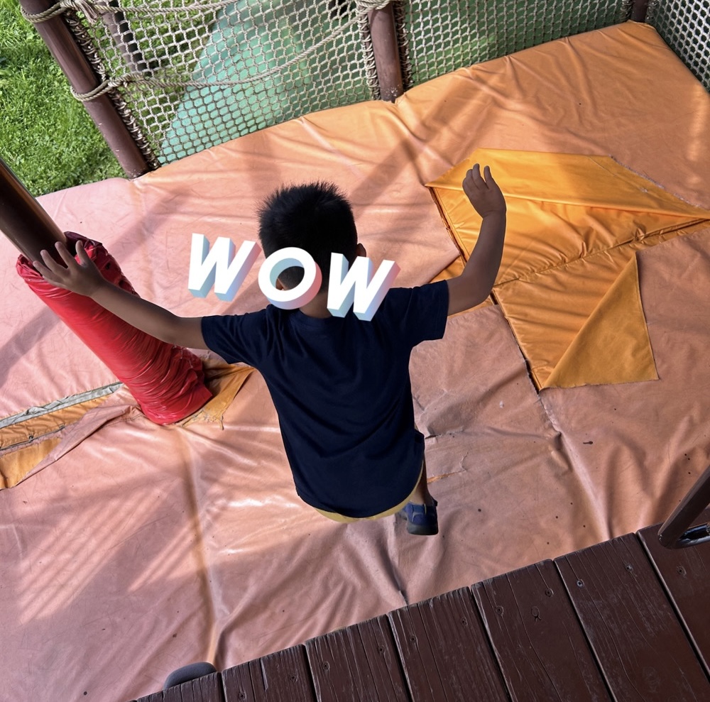 その隣には厚めのマットが敷かれていて、こんな感じで飛び降りて遊ぶことも出来ちゃいました☆