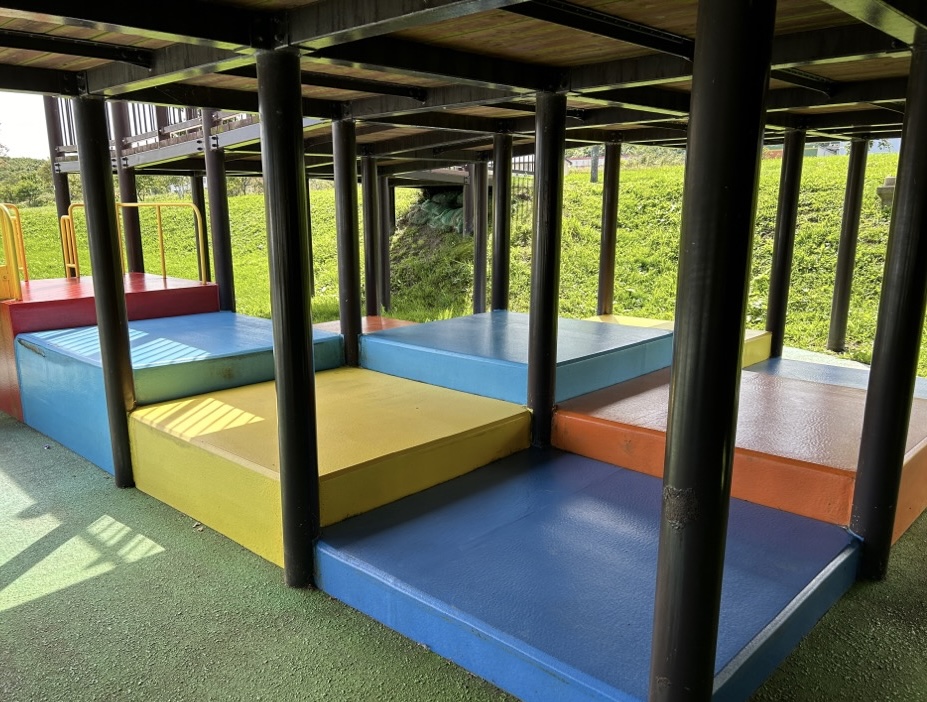カラフルなマットが敷いてあって段差になっていたり(土足のままで遊べるよ)