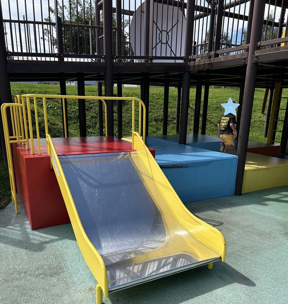 この滑り台で遊ぶ時には、ナイロン系ではない摩擦に強い綿やデニムの素材のパンツを履いて遊ぶのを強くおすすめします!!