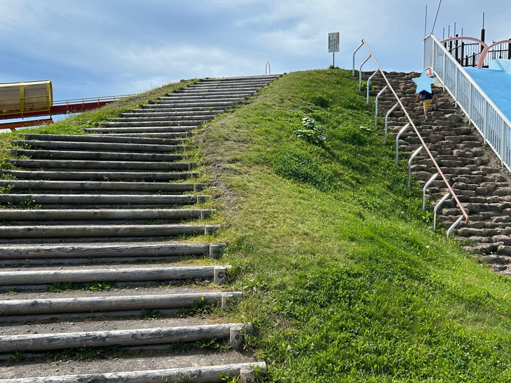 右の階段は足元がぼこぼこしていて小さい子には登りにくいなと感じたので、比較的登りやすい左の階段をおすすめします。