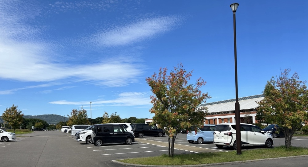 あおぞら交流館(屋内遊技場)の目の前に広い駐車場がありました。