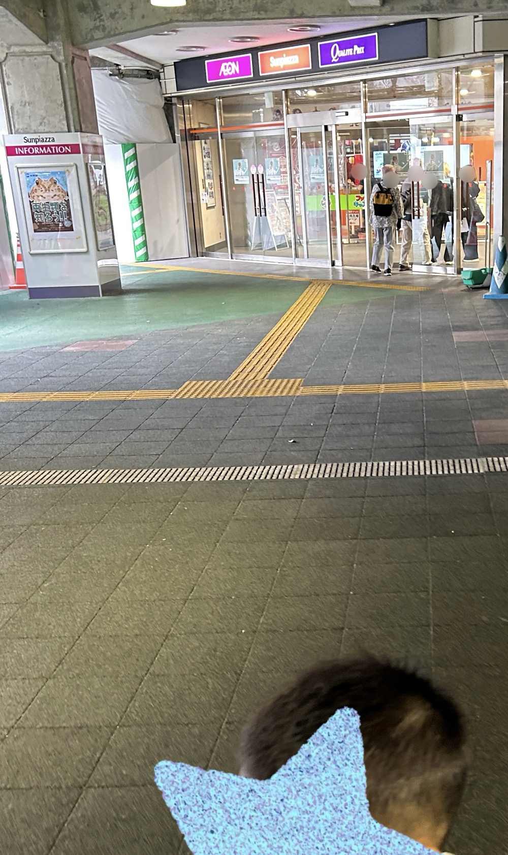 下まで降りるとサンピアザなどの入口前に到着☆入口正面にすぐなのでとっても近いです☆