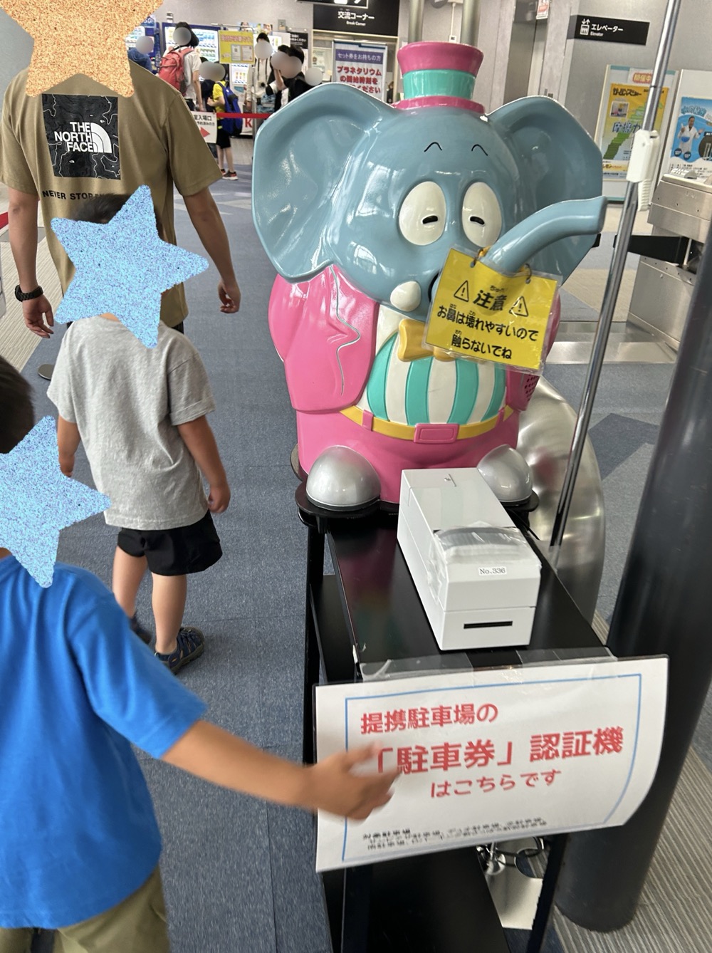 入口ゲートの横にはぞうの駐車券を読み込む機械があるので、忘れずに通していきましょう♪