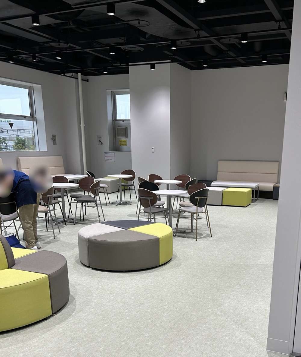 中は広めの作りでテーブルとイス、自動販売機もありました。