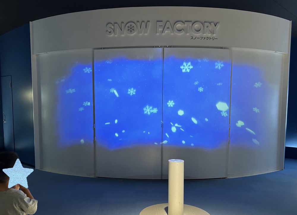 中に入ると自分の体の動きに合わせて映像が綺麗に変わっていく「スノードームシアター」もあって、これも同時に4人でできるから、家族で一緒に楽しめました♪