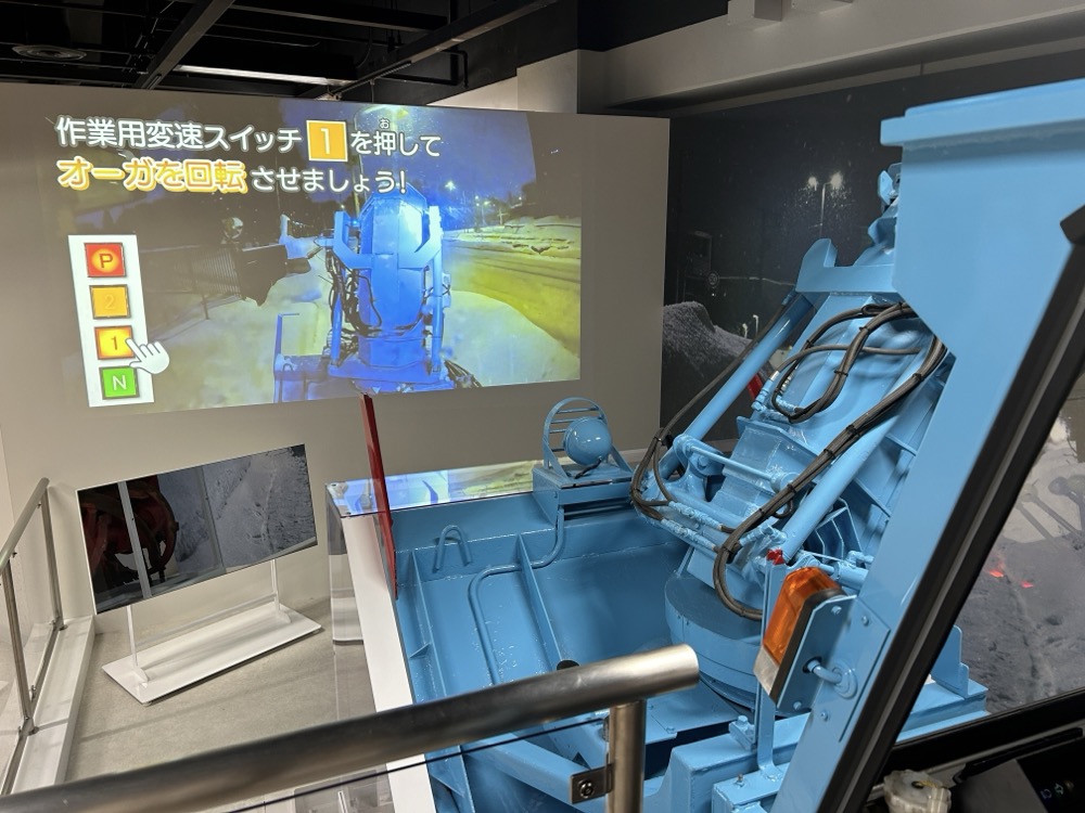 目の前の画面には、除雪車行中の映像が流れるからまるで本当に除雪しているみたい😲