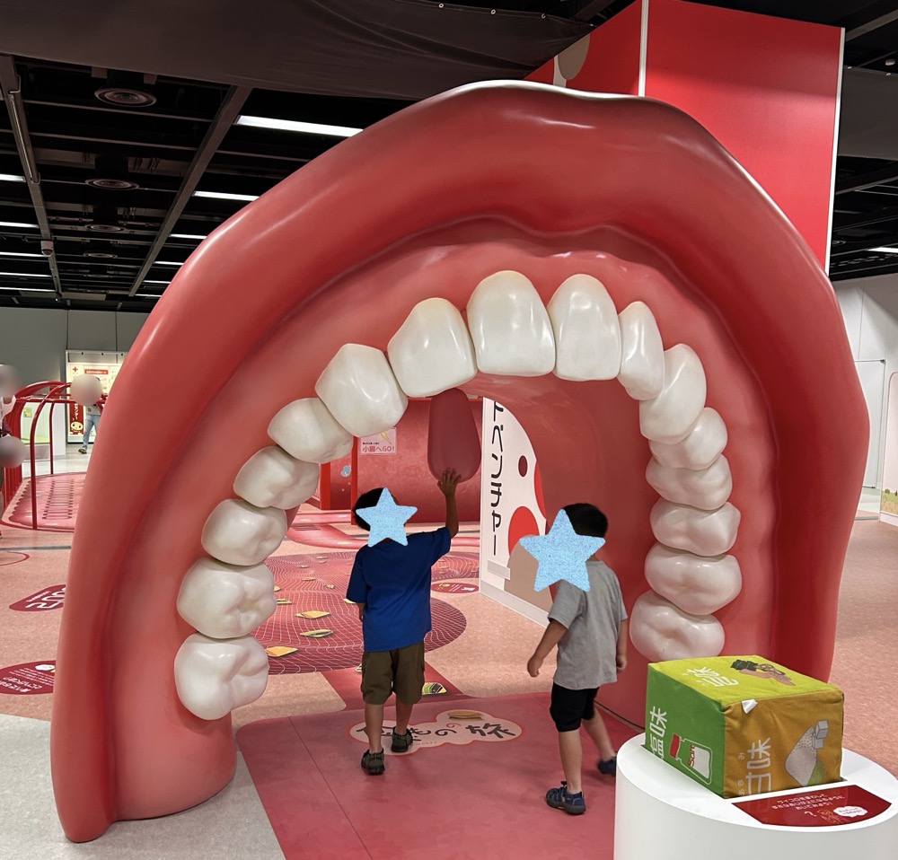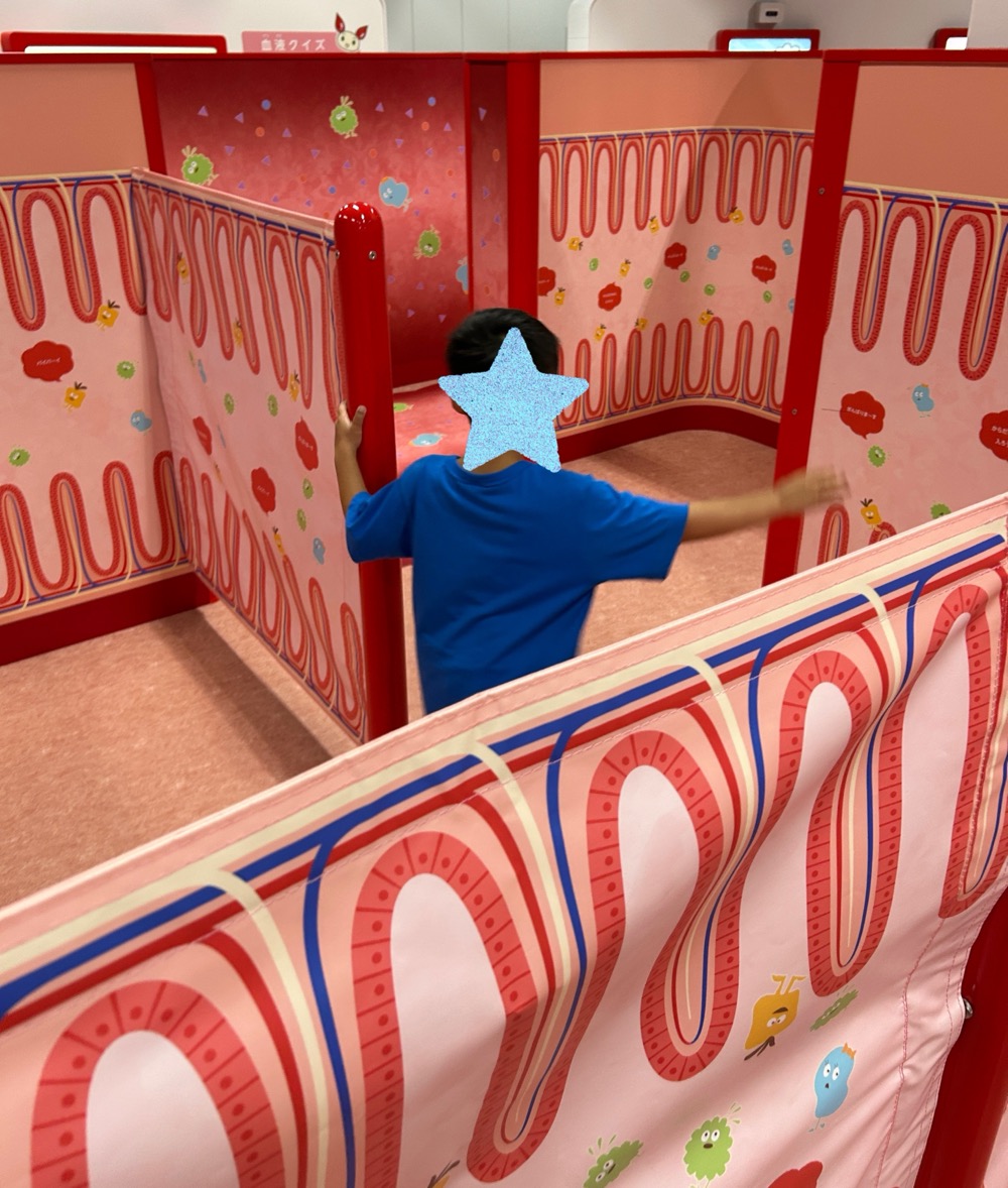 中を通っていくと、口から入って消化されて最後はうんちになって排出されるまでが迷路になっていて面白い作りでした。