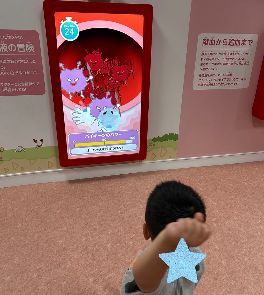 ほかにもいろんな展示があって、血液について学んでクイズができたり