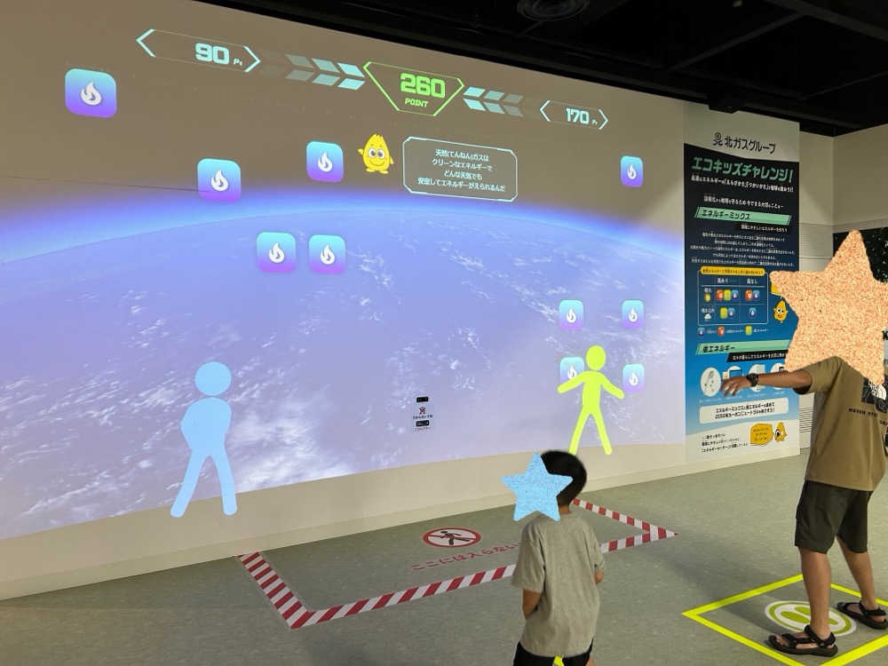他にも上から落ちてくるエネルギーをあつめるゲーム「エコキッズチャレンジ」もあって、同時に二人で楽しむことができました。