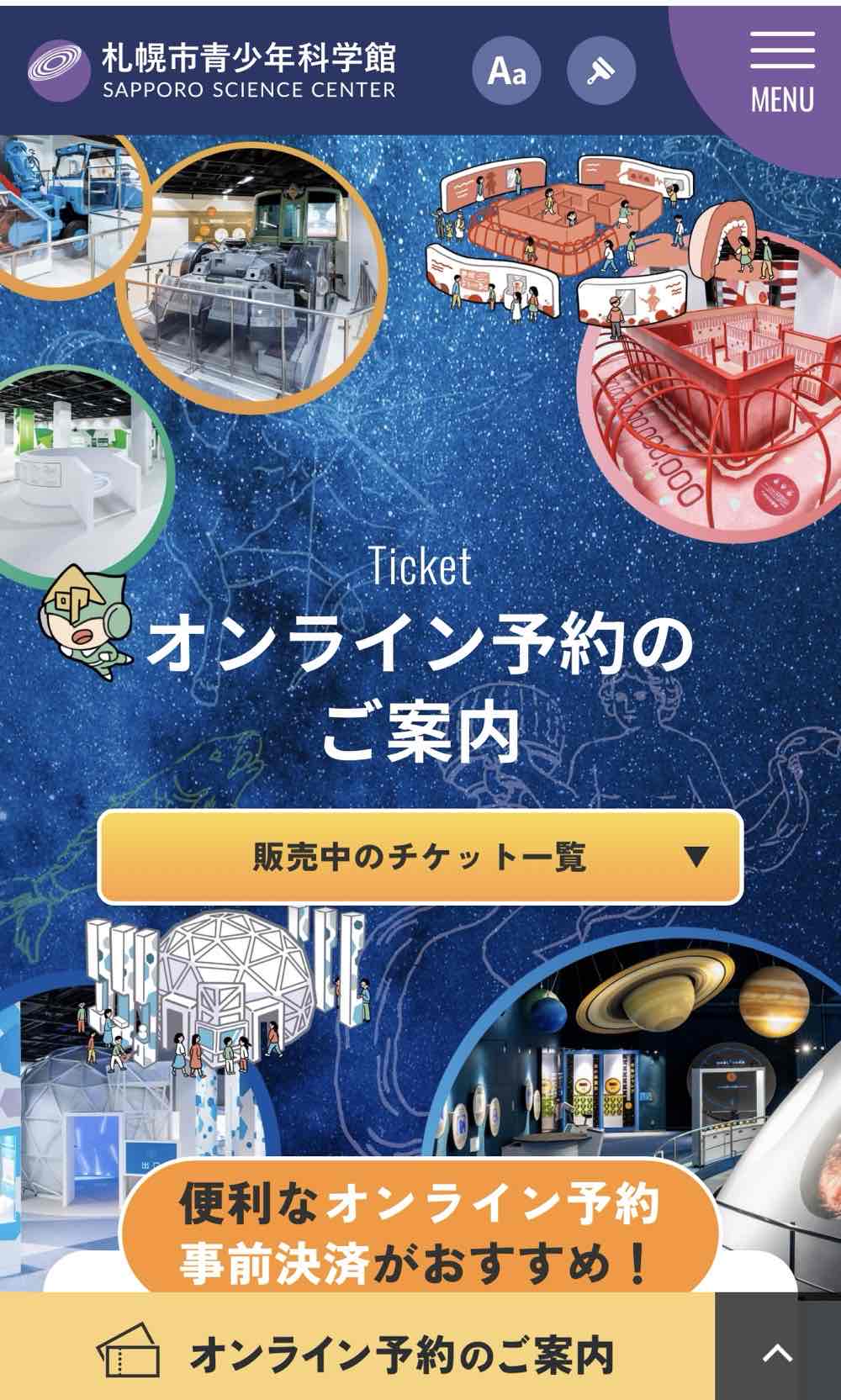 プラネタリウムはチケットを持っていても、希望の時間を事前に予約しなければいけないみたいなので