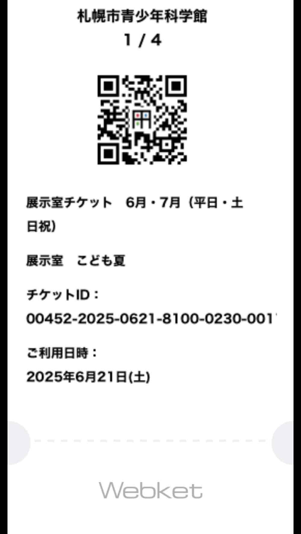 QRコードを表示させて保存するとオンラインチケットになります。