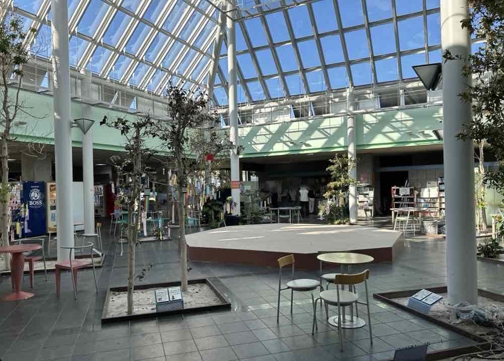中は解放感があって過ごしやすく休憩コーナーにはテーブルやイスもありました。