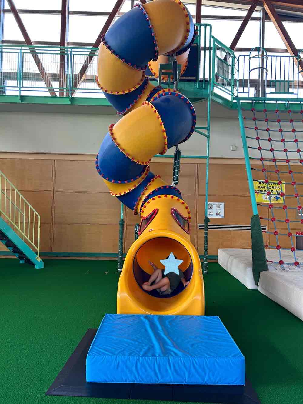 屋外には谷間の冒険広場という遊び場もあって長い滑り台や遊具がありました。