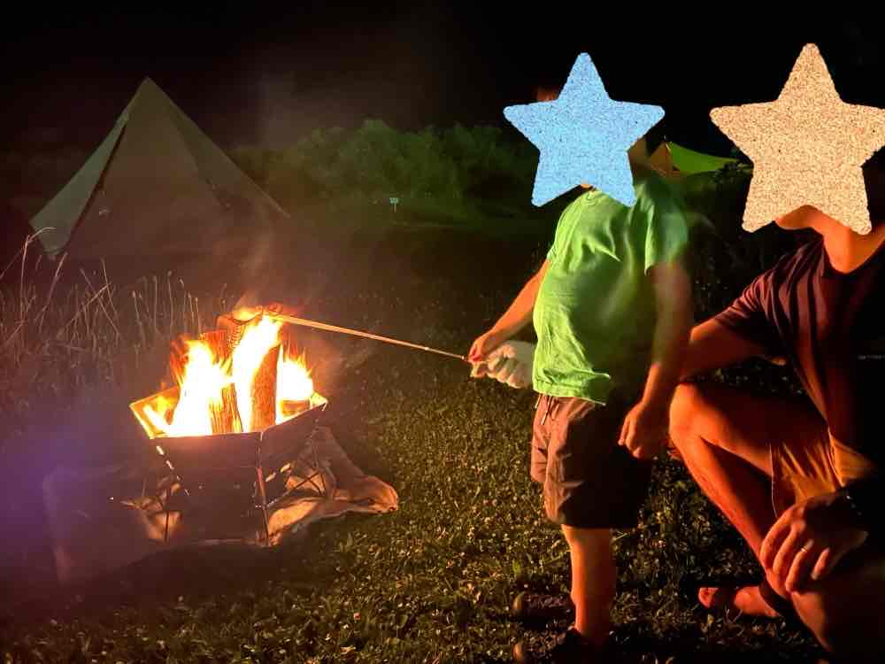 たっぷり遊んだ後は、焚火でマシュマロ焼き開始~。