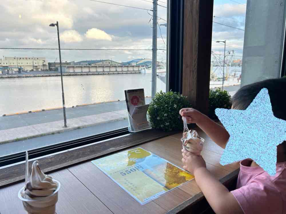 お風呂でさっぱりした後は、お食事処でアイス♪食事処と休憩スペースがとくに居心地がいいんです。