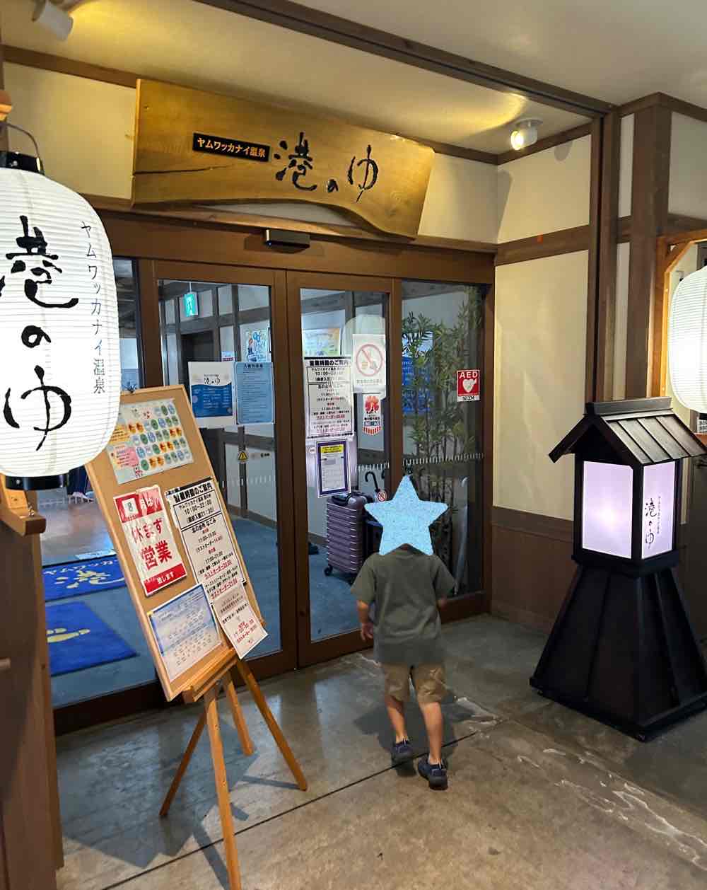キャンプ場から車で約15分走って、駅の近くの温泉へ行ってきました。