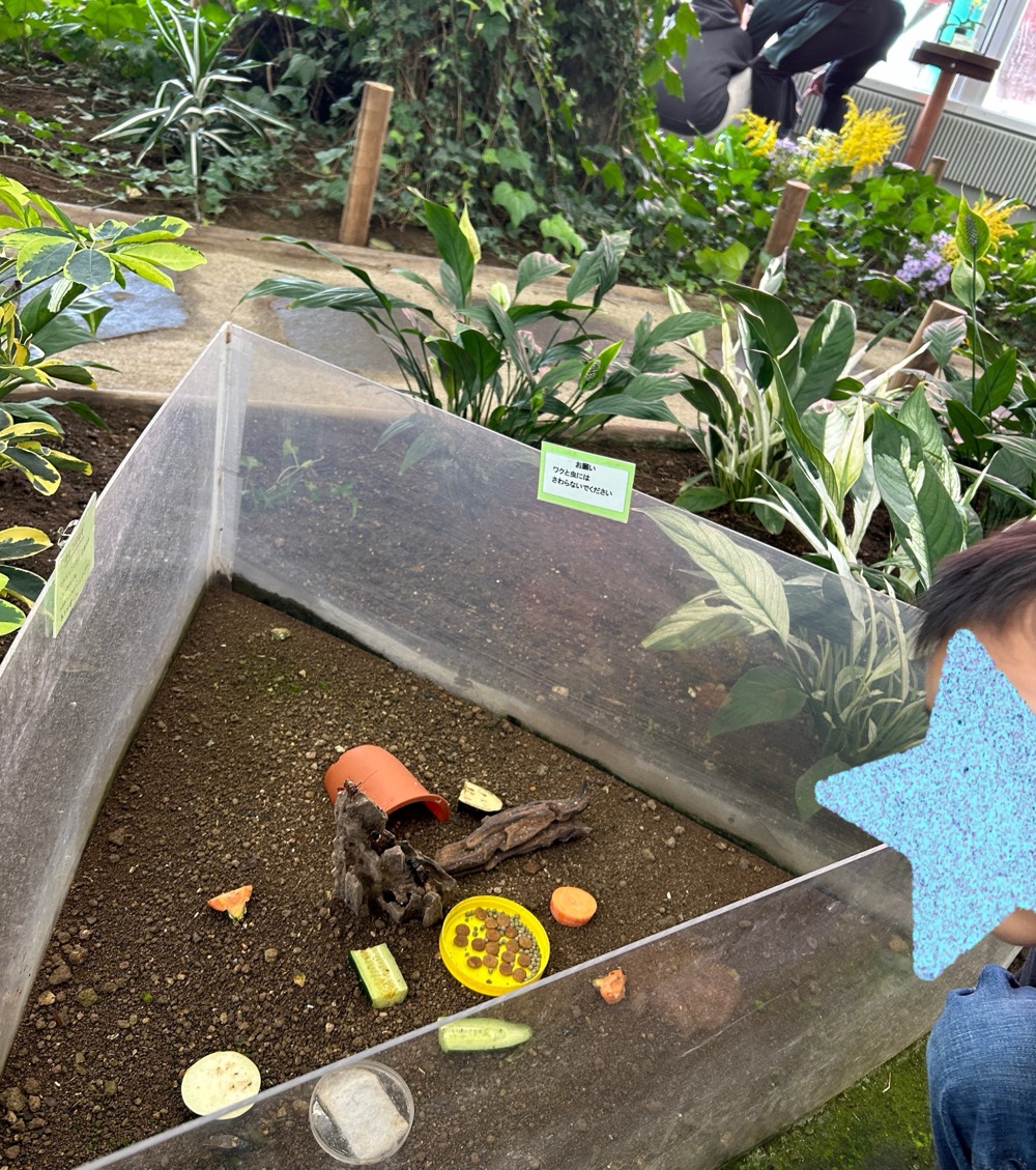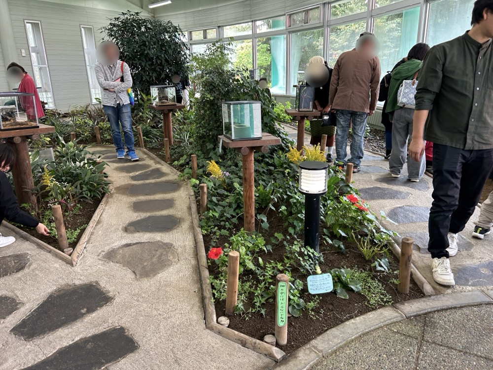 中に入ってみると、植物園のようになっていていろんな昆虫たちが展示されていました。