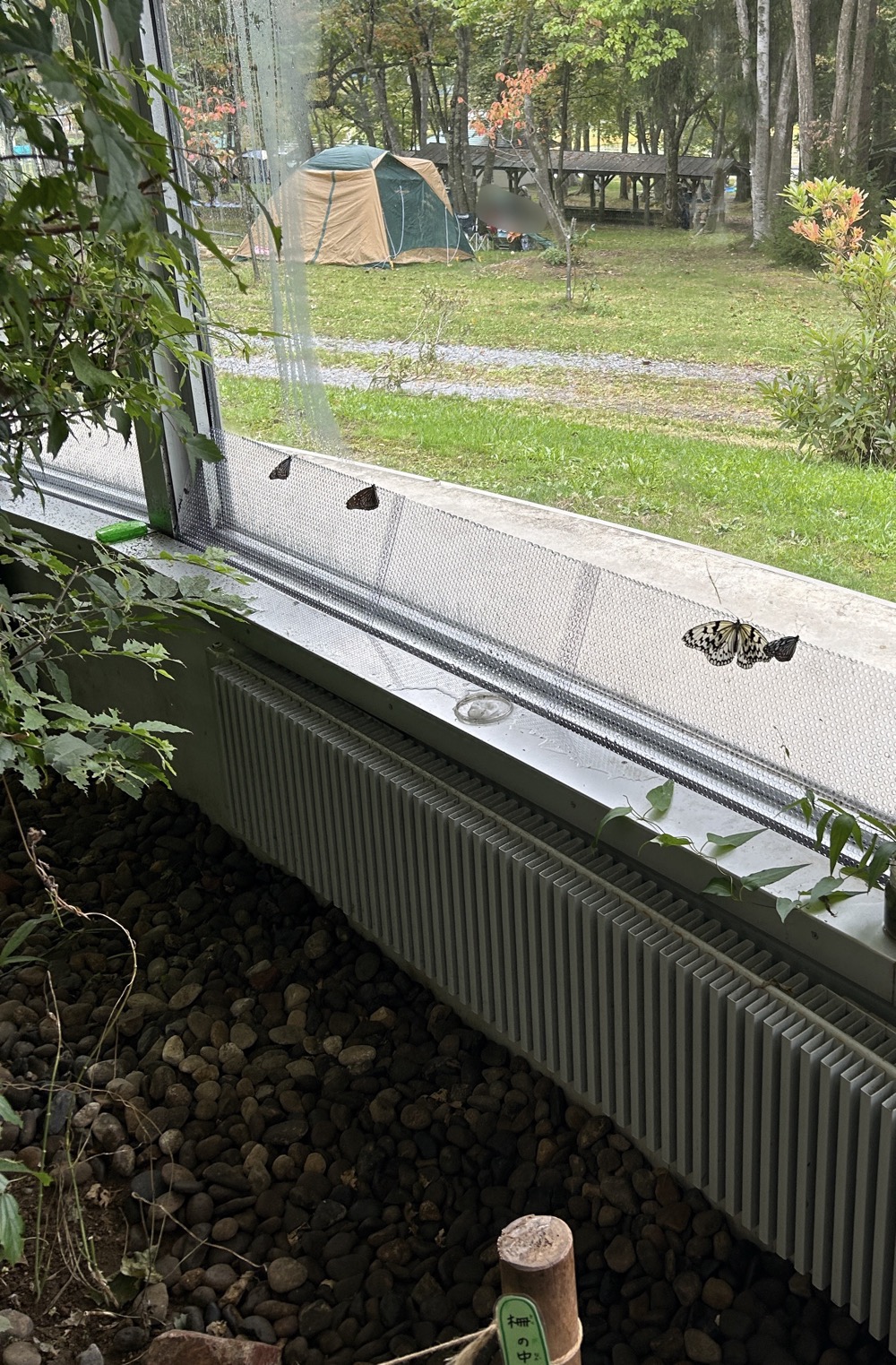 歩きながら窓のあたりをよくみてみると、飛んでいる蝶や羽を休めてる綺麗な蝶が何匹かいました。