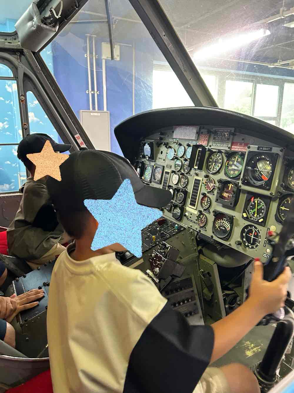 子供たちは操縦席に座り興味津々。