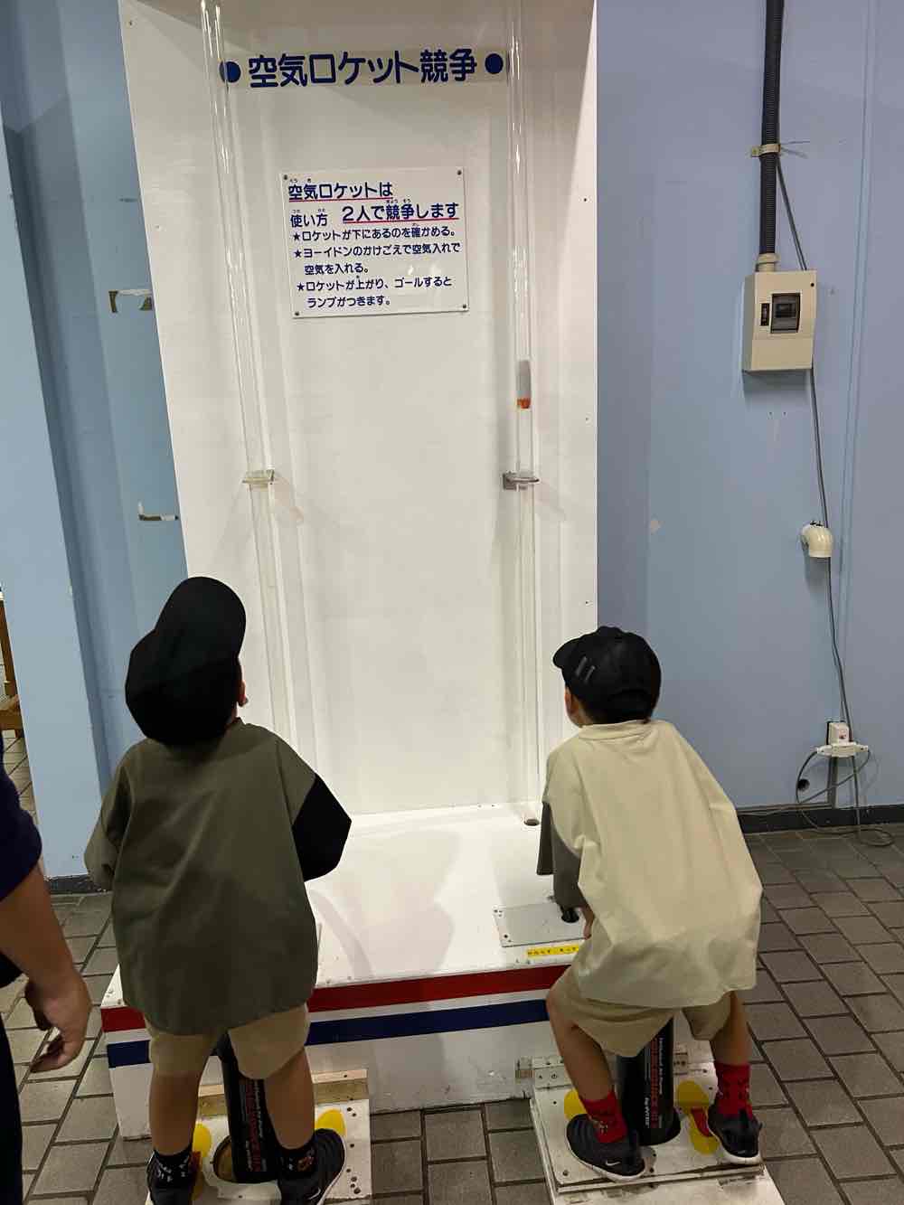 他の科学館でよくみかける「空気ロケット競争」もありました。