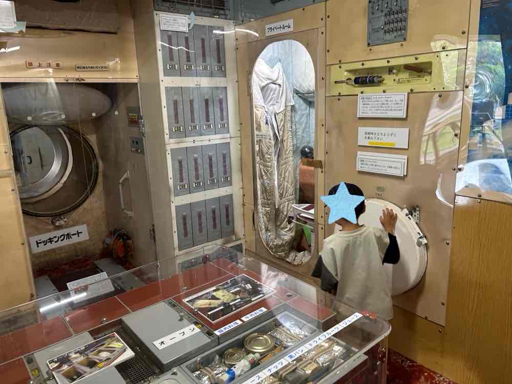 早速中に入ってみると、宇宙飛行士の人が音楽を聴いたり、寝たりする部屋があったり機体の中の作りがわかりやすく展示されていて面白かったです。