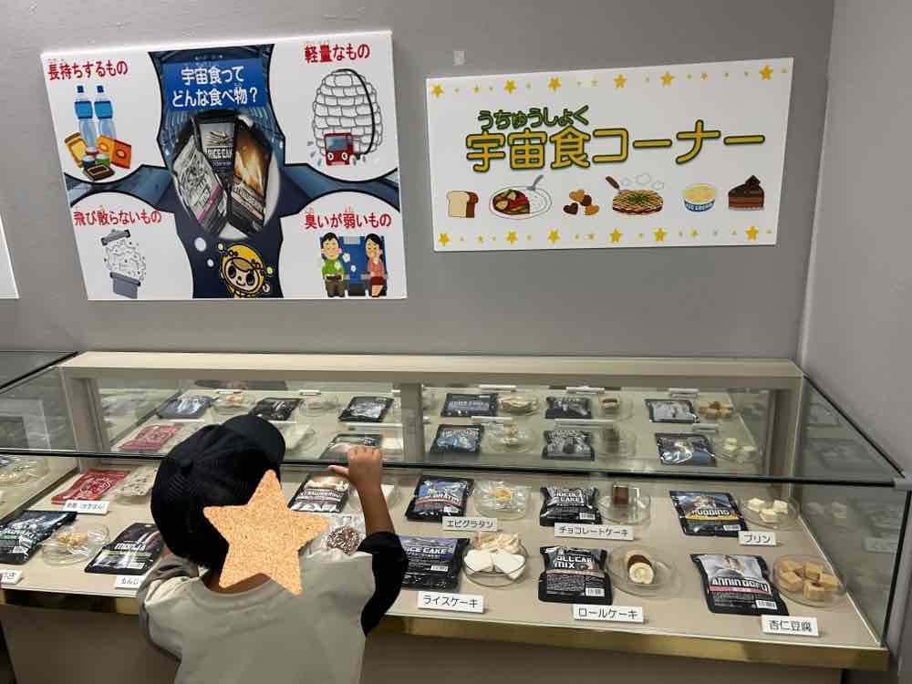 なかなか見ることのない、宇宙食コーナーもありました。